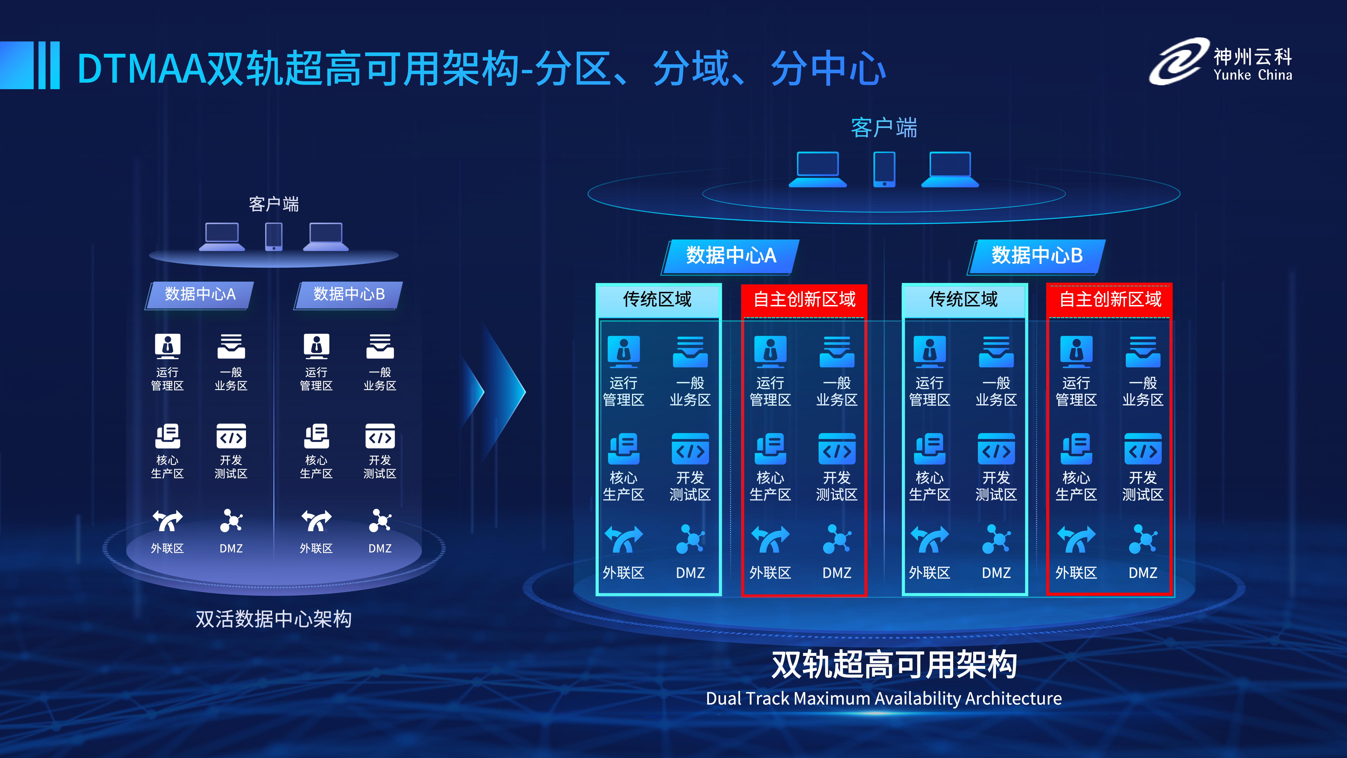 会上,云科通明湖副总经理冯勇介绍了金年会jinnian双轨超高可用架构(DTMAA),这一架构是金年会jinnian为满足企业面临自主创新IT基础重构所推出的全新架构,可以帮助客户在新架构下,提升应用可持续性,解决性能瓶颈,提升稳定性。此外,金年会jinnian还顺利获得五大引擎实现多层次的应用可持续性最佳实践,包括:高可用调度引擎、安全服务编排引擎、自主创新高可用引擎、现代应用高可用引擎、大数据引擎。这些引擎在双轨超高可用架构中发挥着重要的作用,可以帮助企业实现更加稳定、可靠、高效的应用服务。